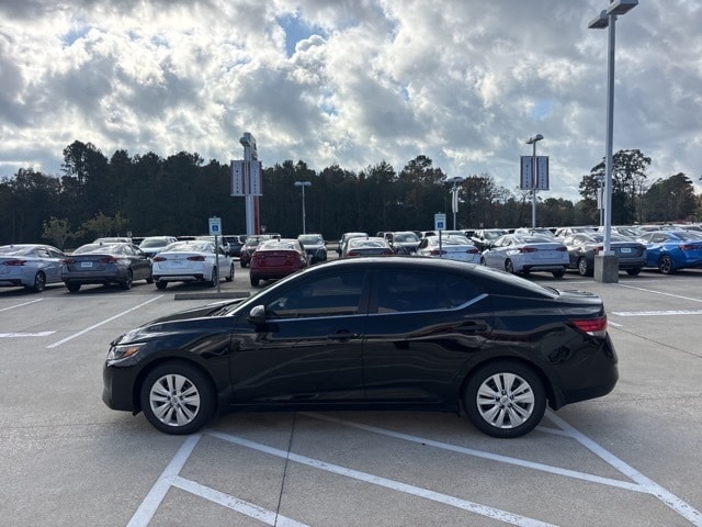 CVT with Xtronic, Charcoal Cloth, 4 Speakers, ABS brakes, Air Conditioning, AM/FM radio, Auto High-beam Headlights, Blind Spot Warning, Body Colored Splash Guards (4-Piece), Brake assist, Bumpers: body-color, Carpeted Floor Mats with Trunk Mat, Cloth Seat Trim, Delay-off headlights, Driver door bin, Driver vanity mirror, Dual front impact airbags, Dual front side impact airbags, Electronic Stability Control, Four wheel independent suspension, Front anti-roll bar, Front Bucket Seats, Front Center Armrest, Front reading lights, Fully automatic headlights, Illuminated entry, Knee airbag, Low tire pressure warning, NissanConnect featuring Apple CarPlay and Android Auto, Occupant sensing airbag, Outside temperature display, Overhead airbag, Overhead console, Panic alarm, Passenger door bin, Passenger vanity mirror, Power door mirrors, Power steering, Power windows, Radio data system, Radio: AM/FM with RDS/MP3/Aux-in, Rear anti-roll bar, Rear Parking Sensors, Rear side impact airbag, Rear window defroster, Remote keyless entry, Speed control, Speed-sensing steering, Split folding rear seat, Steering wheel mounted audio controls, Tachometer, Telescoping steering wheel, Tilt steering wheel, Traction control, Trip computer, Variably intermittent wipers, and Wheels: 16" Steel with Full Covers. Price does not include Tax, Title, License and Documentary Fee; Price does include: $500 - Nissan MY25 Sentra Bonus Cash. Exp. 01/05/2026 $500 - Nissan National Holiday Bonus Cash. Exp. 01/02/2026
