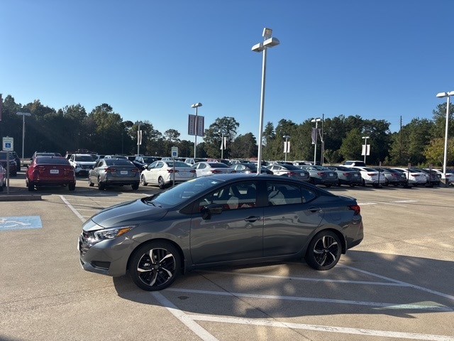 Trunk Package (Shopping Bag Hooks and Trunk Net), 17" Aluminum Alloy Wheels, 6 Speakers, ABS brakes, Air Conditioning, Alloy wheels, AM/FM radio: SiriusXM, Apple CarPlay/Android Auto, Auto High-beam Headlights, Automatic temperature control, Blind Spot Warning, Brake assist, Bumpers: body-color, Carpeted Floor Mats & Trunk Mat (5-Piece Set), Delay-off headlights, Driver door bin, Driver vanity mirror, Dual front impact airbags, Dual front side impact airbags, Electronic Stability Control, Emergency communication system, Front anti-roll bar, Front Bucket Seats, Front Center Armrest, Front reading lights, Front wheel independent suspension, Fully automatic headlights, Heated door mirrors, Heated Front Bucket Seats, Heated front seats, Illuminated entry, Knee airbag, Leather steering wheel, Low tire pressure warning, Occupant sensing airbag, Outside temperature display, Overhead airbag, Panic alarm, Passenger door bin, Passenger vanity mirror, Power door mirrors, Power steering, Power windows, Radio data system, Radio: AM/FM Audio System, Rear Parking Sensors, Rear side impact airbag, Rear window defroster, Remote keyless entry, Speed control, Splash Guards, Split folding rear seat, Spoiler, SR Fabric Seat Trim, Steering wheel mounted audio controls, Tachometer, Telescoping steering wheel, Tilt steering wheel, Traction control, Trip computer, Turn signal indicator mirrors, and Variably intermittent wipers. Price does not include Tax, Title, License and Documentary Fee; Price does include: $750 - Nissan CR MY25 Versa (Excl. S) Bonus Cash - October. Exp. 11/03/2025