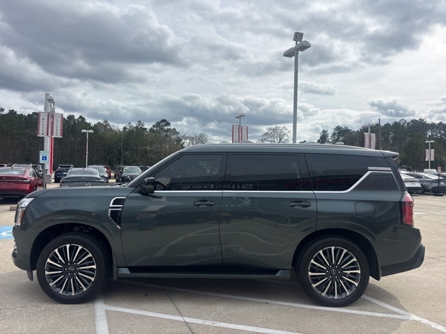 4WD, 12 Speakers, 3rd row seats: split-bench, 4-Wheel Disc Brakes, ABS brakes, Adaptive suspension, Air Conditioning, Alloy wheels, AM/FM radio: SiriusXM w/360L, Anti-whiplash front head restraints, Apple CarPlay/Android Auto, Auto High-beam Headlights, Auto tilt-away steering wheel, Auto-dimming door mirrors, Auto-dimming Rear-View mirror, Auto-leveling suspension, Automatic temperature control, Brake assist, Bumpers: body-color, Carpeted Floor Mats with Captain Chairs, Center Front Spoiler, Climate Controlled Heated and Ventilated Front Seats, Compass, Cross Bars, Delay-off headlights, Driver door bin, Driver vanity mirror, Dual front impact airbags, Dual front side impact airbags, Electronic Stability Control, Emergency communication system: NissanConnect Services, Four wheel independent suspension, Front anti-roll bar, Front Bucket Seats, Front Center Armrest, Front dual zone A/C, Front fog lights, Front reading lights, Fully automatic headlights, Garage door transmitter: HomeLink, Genuine wood dashboard insert, Heads-Up Display, Heated door mirrors, Heated front seats, Heated rear seats, Heated steering wheel, HVAC memory, Illuminated entry, Illuminated Kick Plates, Knee airbag, Leather steering wheel, Low tire pressure warning, Memory seat, Navigation system: Google Maps, Occupant sensing airbag, Outside temperature display, Overhead airbag, Overhead console, Panic alarm, Passenger door bin, Passenger vanity mirror, Power door mirrors, Power driver seat, Power Liftgate, Power moonroof, Power passenger seat, Power steering, Power windows, Premium Paint, Quilted Leather Seat Trim, Radio: NissanConnect with SiriusXM 360L, Rain sensing wipers, Rear air conditioning, Rear anti-roll bar, Rear Bumper Protector, Rear reading lights, Rear window defroster, Rear window wiper, Reclining 3rd row seat, Remote keyless entry, Security system, Speed control, Speed-sensing steering, Speed-Sensitive Wipers, Splash Guards, Split folding rear seat, Spoiler, Steering wheel memory, Steering wheel mounted audio controls, Tachometer, Telescoping steering wheel, Tilt steering wheel, Traction control, Trip computer, Turn signal indicator mirrors, Variably intermittent wipers, Ventilated front seats, Voltmeter, and Wheels: 22" x 8.5J Machined & Painted Alloy.