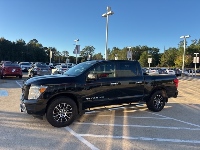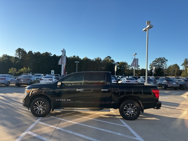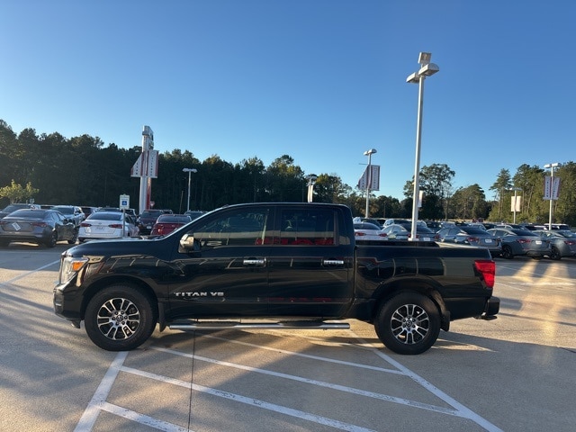 Accessory Utility Package (Bumper Step, Drop-In Bed Liner, and Receiver Hitch), Protection Package 1, SV Convenience Package (110V/12V Outlets In Back Of Center Console, 2 Illuminated USB-A Ports In Back Of Center Console, Auto-Dimming Rear-View Mirror, Chrome Interior Door Locks, Convex Spotter Mirror, Dedicated Configurable Cell Phone Holder, Dual Zone Automatic HVAC, Front & Rear Parking Sensors, Heated Front Captain's Chairs, Intelligent Key System, Leather-Wrapped Steering Wheel, Power Sliding Rear Window w/Defogger, Radio: NissanConnect w/Navigation, Rear HVAC Vents, Remote Engine Start on Key Fob, and Traffic Sign Recognition (TSR)), 3.692 Axle Ratio, 4-Wheel Disc Brakes, 6 Speakers, ABS brakes, Air Conditioning, Alloy wheels, AM/FM radio: SiriusXM, Auto High-beam Headlights, Blind Spot Warning, Brake assist, Bumpers: chrome, Carpet Floor Mats (L95), Cloth Seat Trim, Driver door bin, Driver vanity mirror, Dual front impact airbags, Dual front side impact airbags, Electronic Stability Control, Electronic Tailgate Lock (DISC), Emergency communication system: NissanConnect Services, Front anti-roll bar, Front Center Armrest w/Storage, Front reading lights, Front Split Bench Seat (40/20/40), Front wheel independent suspension, Fully automatic headlights, Heated door mirrors, Illuminated entry, Knee airbag, Low tire pressure warning, NissanConnect featuring Apple CarPlay and Android Auto, Occupant sensing airbag, Outside temperature display, Overhead airbag, Overhead console, Panic alarm, Passenger door bin, Passenger vanity mirror, Power door mirrors, Power steering, Power windows, Radio data system, Radio: NissanConnect AM/FM, Rear anti-roll bar, Rear Parking Sensors, Rear seat center armrest, Rear step bumper, Rear window defroster, Remote keyless entry, Security system, Speed control, Speed-sensing steering, Speed-Sensitive Wipers, Splash Guards, Split folding rear seat, Steering wheel mounted audio controls, Tachometer, Telescoping steering wheel, Tilt steering wheel, Titan Illuminated Kick Plate, Traction control, Trip computer, Turn signal indicator mirrors, Variably intermittent wipers, Voltmeter, Wheels: 18" x 8" Painted Machined Alloy, and Wheels: 20" x 8" Chrome.